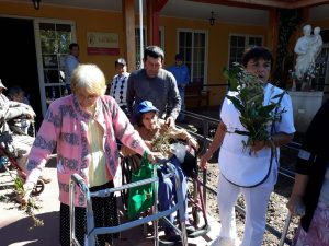 Aprovechamos esta instancia para enviar un cariñoso saludo a los 2.200 adultos mayores que viven en los 29 hogares de Fundación Las Rosas, entre La Serena y Osorno. Saludamos también a los hogares que nos enviaron sus fotos en este Domingo de Ramos: Hogar Santos Ángeles Gabriel, Miguel y Rafael, de Melocotón; Hogar La Visitación de María, en La Serena; Hogar Nuestra Señora de Las Mercedes de La Islita; Hogar San Alberto Hurtado de Quillota; Hogar Sagrados Corazones de Jesús y María de Chépica y Hogar María Madre de Dios de El Bosque.