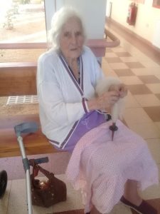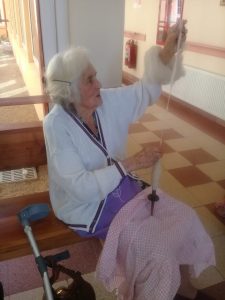 Lleva poco tiempo en como residente de Fundación Las Rosas, pero con el cuidado y afecto que recibe a diario, la adaptación ha sido rápida:»Me siento muy querida acá», nos dice. Madre de cinco hijos, oriunda de La Candelaria, sector al interior de los cerros de Chépica, dedicó su vida a la crianza de sus hijos y el trabajo con animales domésticos, como las ovejas, de las cuales extraía la materia prima para hilar amor y recuerdos.