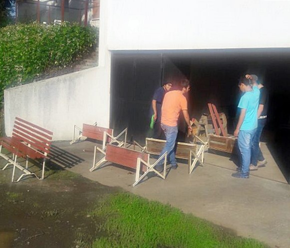 Los estudiantes también participaron en la construcción de senderos, reparación de bancos y en la construcción de una entretenida cancha de tejo para que los abuelos disfrutaran las fiestas patrias de la mejor forma.