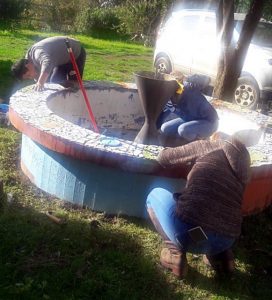 Alumnos pertenecientes a distintas carreras técnico-profesionales del instituto AIEP llegaron hasta el Hogar Santa María de Osorno para realizar una serie de trabajos de mejora, como el arreglo de la pileta de agua del recinto.