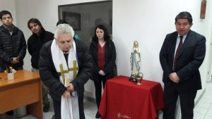 La bendición de las modernas oficinas estuvo a cargo del Vicario Parroquial, Padre Mario Molina.