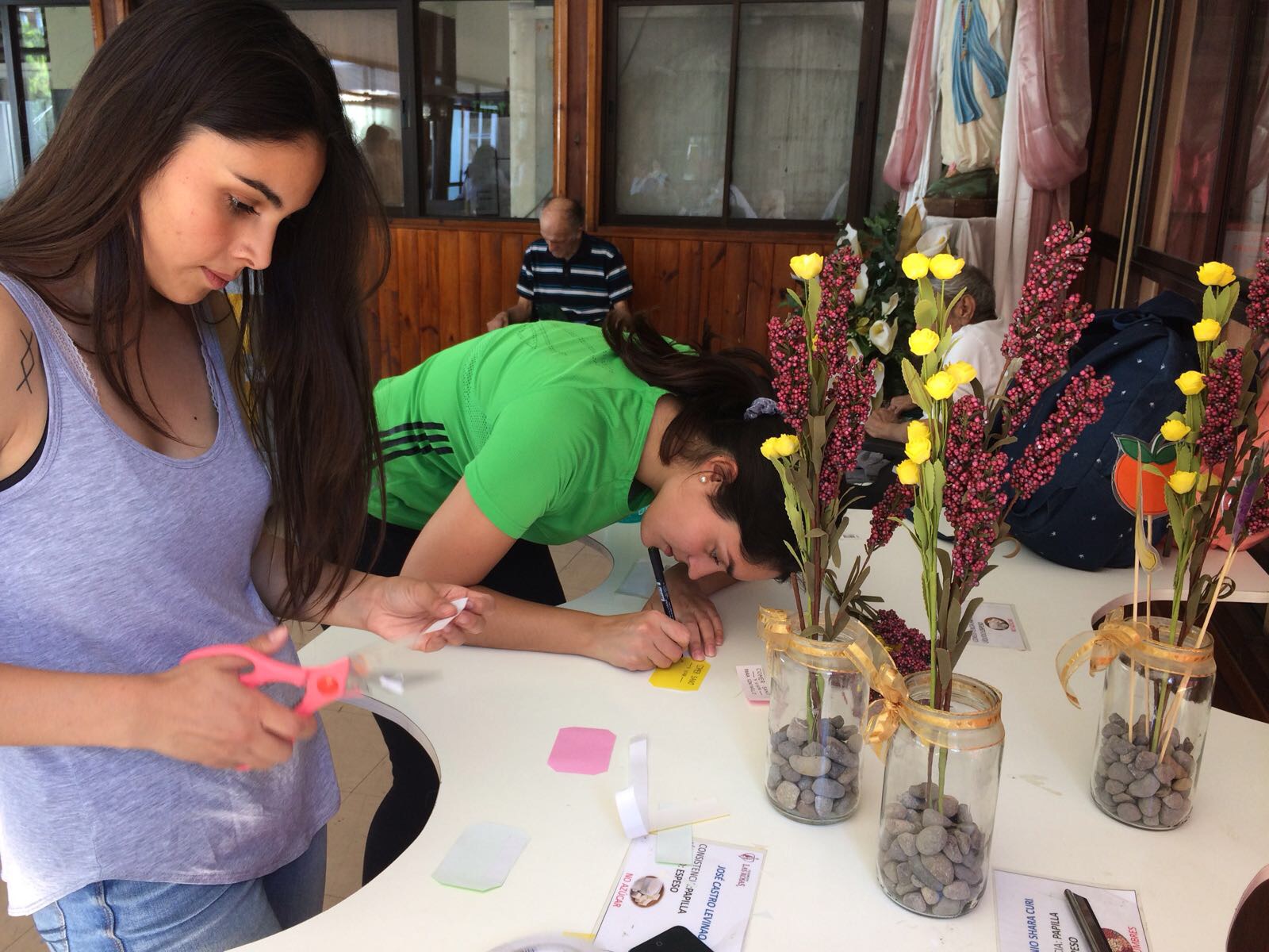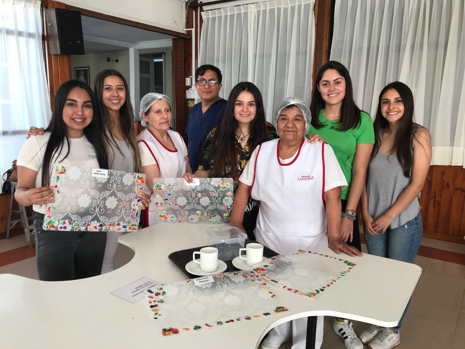 Muy comprometidas, las voluntarias Andrea, Valentina, Camila, Ximena y Paula, además compartieron e hicieron actividades participativas con los residentes, tales como decorar los individuales de forma personalizada o confeccionar centros de mesa con mensajes motivadores; todo lo cual aportó belleza y encanto al recinto.