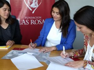 La firma del convenio se realizó en las oficinas de EmolTv, de la empresa El Mercurio, y contó además con la presencia de la Jefa de Comunicaciones y Marketing de Fundación Las Rosas, Marcela Bravo.