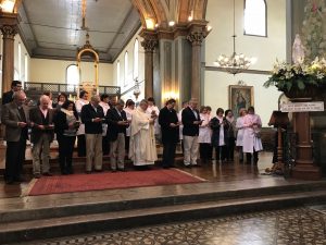 Durante la Eucaristía, 17 nuevas Damas de Blanco recibieron el pañuelo rosado y la medalla de la Virgen que las caracteriza, y al igual que los voluntarios Custodio San José, recibieron la medalla de San José y el Santo Rosario.