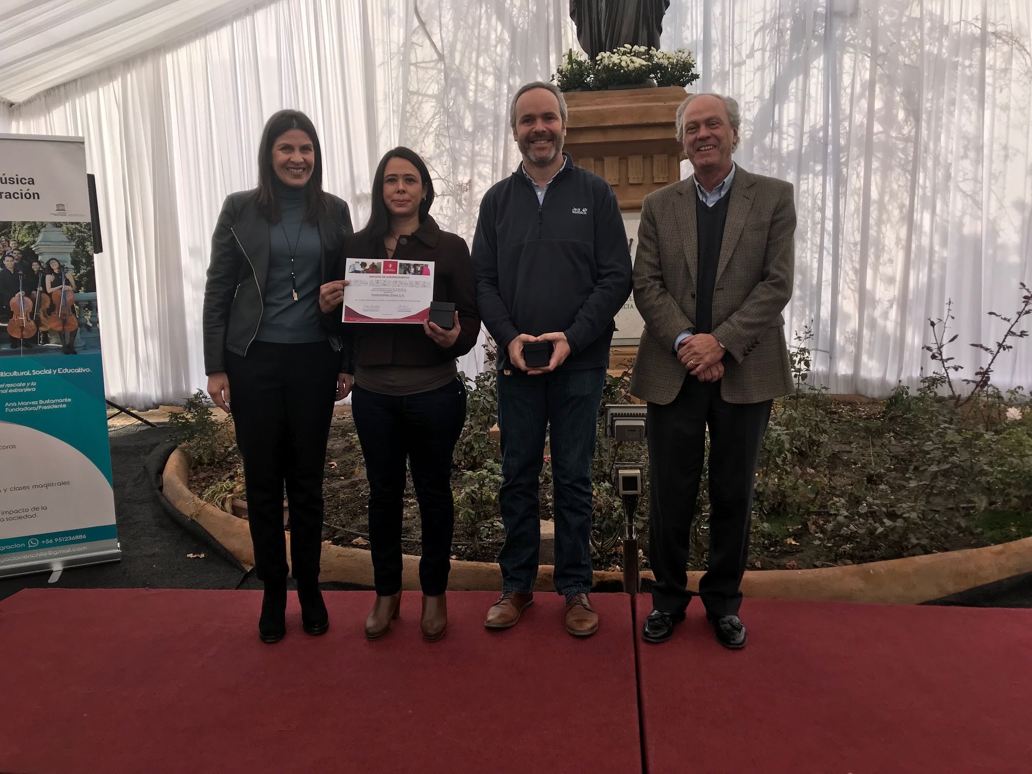 Además, se entregó el tradicional reconocimiento a empresas, colegios e instituciones cuyo compromiso con Fundación Las Rosas ha marcado una diferencia en nuestros hogares: a Inversiones Enex, Colegio San Lorenzo, Colegio Tabancura, Colegio Huelén, Grupo Folclórico Cenizas de Chile y Grupo Espectáculo los Abuelos de Chile.