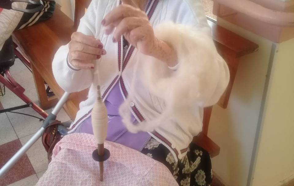 Verla hilar con tanta dedicación y cariño resulta un regalo. A sus 94 años la señora María Lidia mantiene esta habilidad que aprendió de su madre, a muy temprana edad, y que hoy sigue practicando en sus ratos libres, en el Hogar Sagrados Corazones de Jesús y María, en Chépica, Región de O’Higgins.