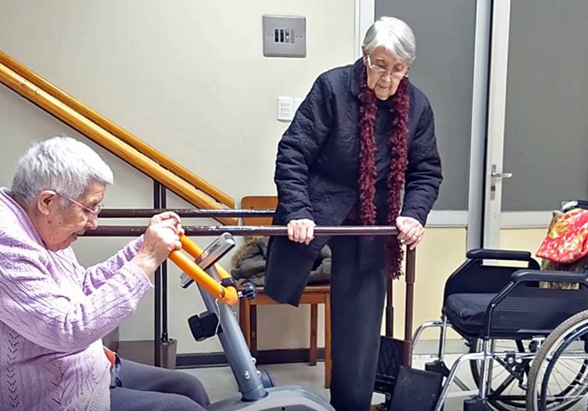 La señora Eliana tampoco descuida sus habituales ejercicios de rehabilitación en el gimnasio del Hogar, además de realizar otras actividades para «sentirme útil». «Pese a que me muevo en silla de ruedas, trato de hacer algunas cosas como ayudar en la lavandería, a planchar o a ordenar la ropa de los residentes».