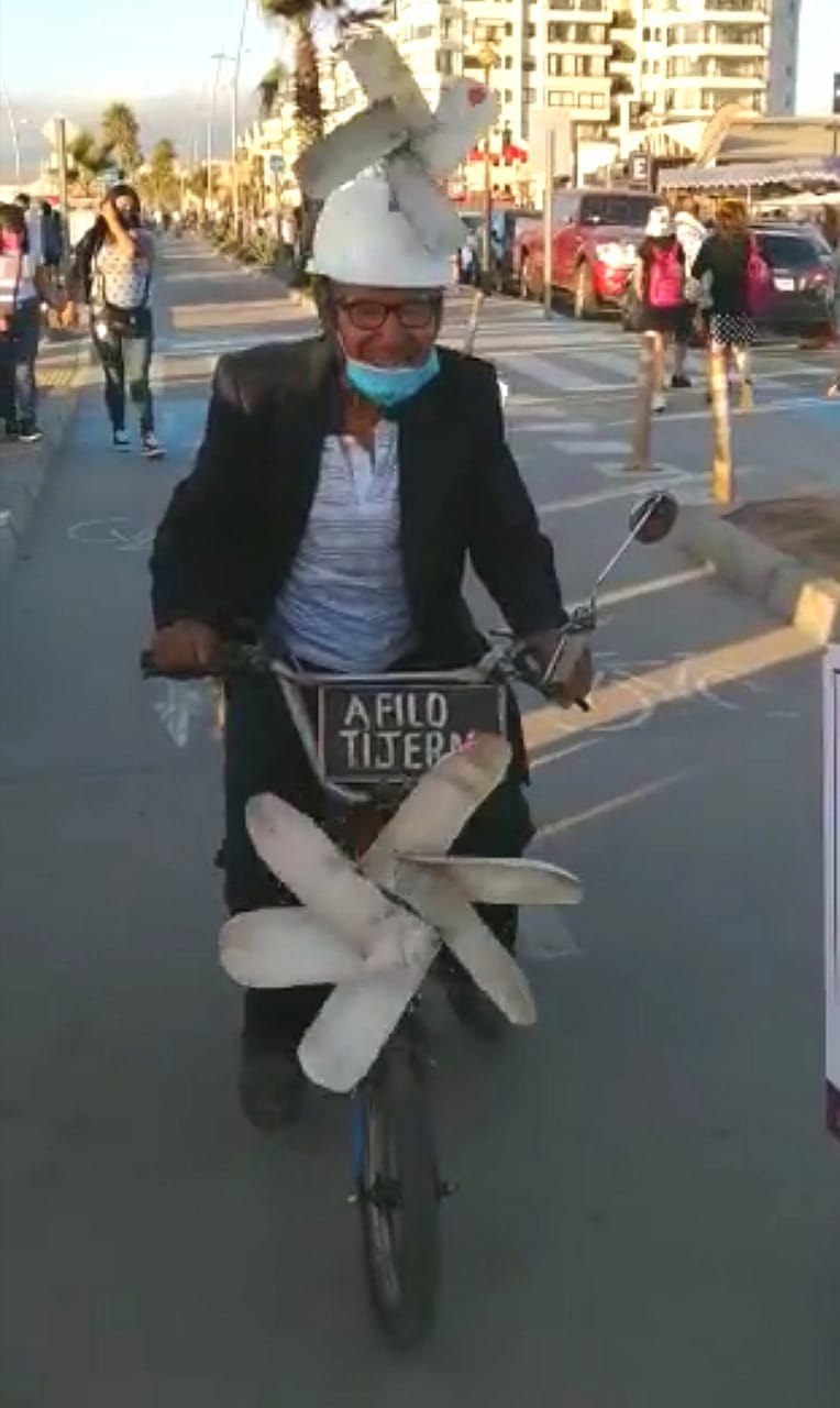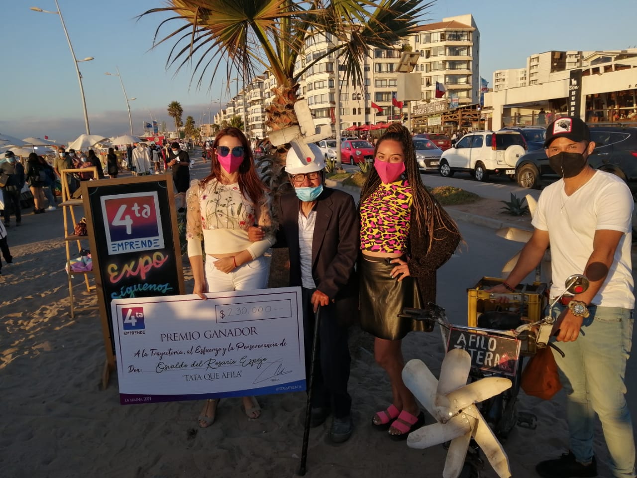Precisamente por su carisma y su sencillez, la asociación Cuarta Emprende, conformada por pymes de la región, decidió otorgarle un premio “ A la trayectoria, al esfuerzo y la perseverancia” consistente en $230 mil pesos. A fines de febrero, en una ceremonia en la Avda. del Mar, le entregaron un cheque gigante con su nombre, el que llegó a recibir en su bicicleta voladora. Pero, en ese instante, decidió avisar a los organizadores que deseaba donar ese dinero “a otros abuelos que lo necesiten más. Yo vivo con lo suficiente, salgo a trabajar, cobro 3 mil pesos por afilar y la gente me da 5 mil a veces”, señala con humildad.