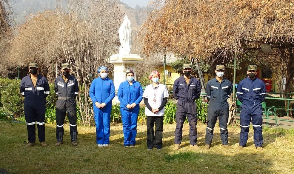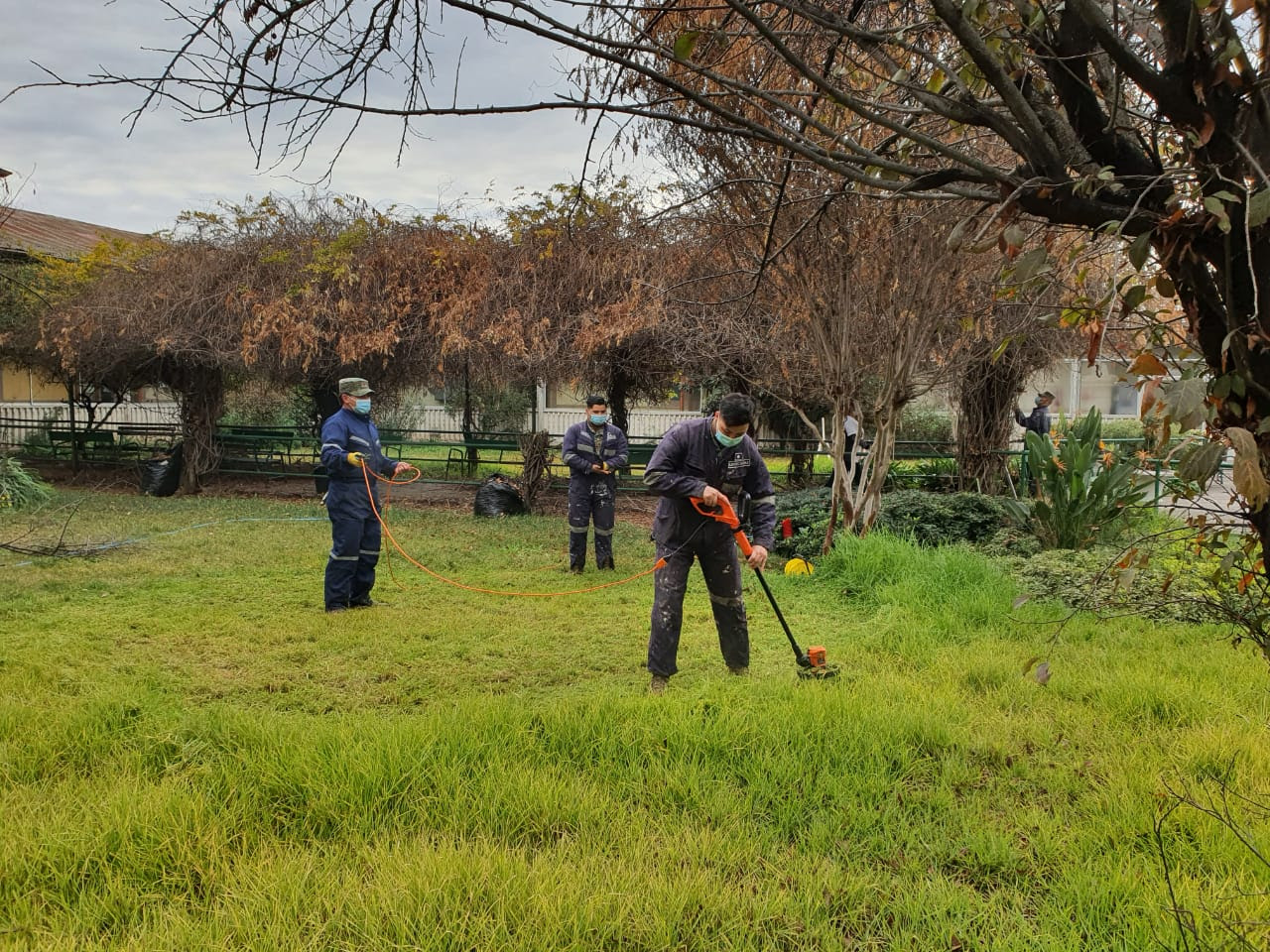 Gracias a la alianza que existe hace algunos años entre el Hogar San Carlos de Recoleta y el Regimiento de Infantería N°1 “Buin”, y que Pilar Martínez, Directora Técnica Administrativa y la Hermana Olga Cortes, Directora Religiosa, se han encargado de fortalecer, es que 10 jóvenes pertenecientes al regimiento, realizaron trabajos de limpieza, mantención y poda en las áreas verdes del Hogar.