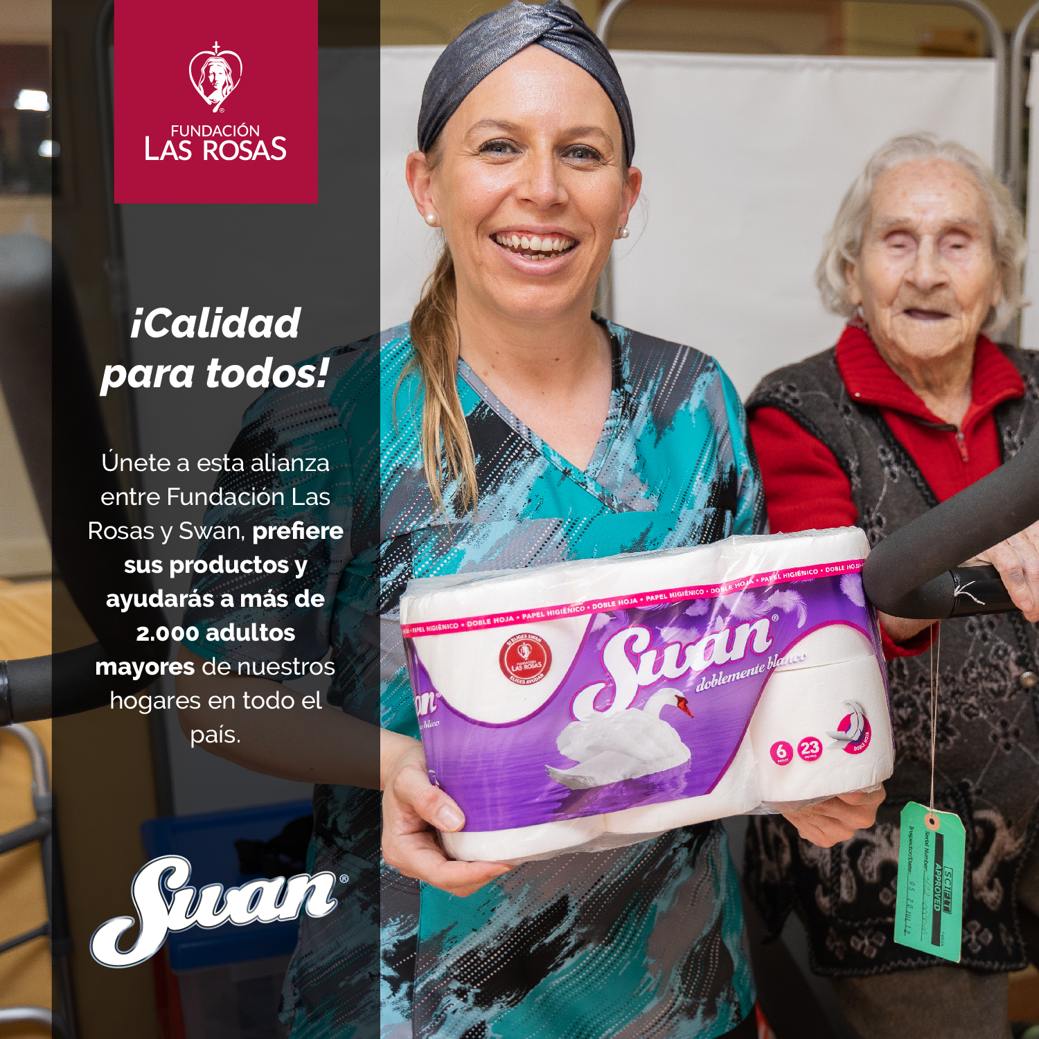 Muy motivados por la causa de la tercera edad, la marca Swan decidió realizar una campaña de apoyo a los 2.000 residentes de Fundación Las Rosas, quienes han sido especialmente golpeados por la Pandemia y las restricciones sanitarias y de visitas a los Hogares.