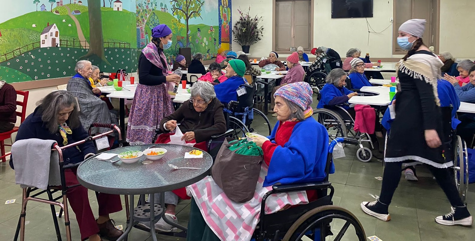 Un entretenido “Viaje imaginario a Chiloé” realizaron en el Hogar San Carlos de Recoleta, durante julio. La actividad recreativa permitió a las residentes recordar y disfrutar canciones, costumbres, bailes y recetas de la mítica isla sureña; todo de la mano de los terapeutas y cuidadoras del Hogar.