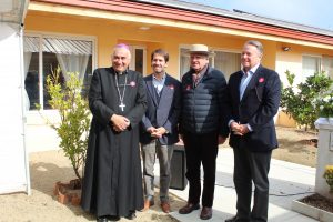 Monseñor Vera; Max Donoso, director de Hogares FLR; Ibes Cardoen y Edgardo Fuenzalida, Gerente General FLR