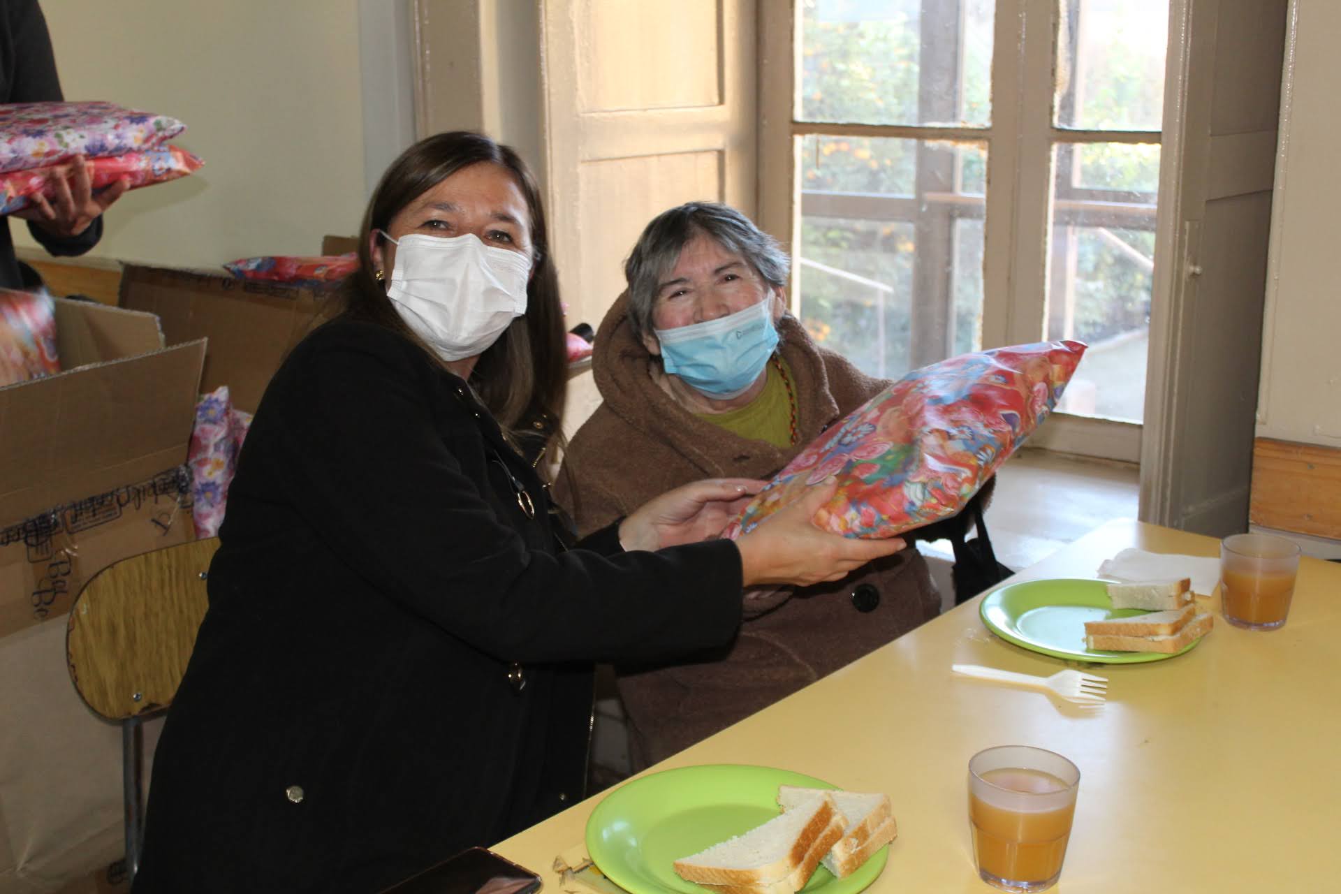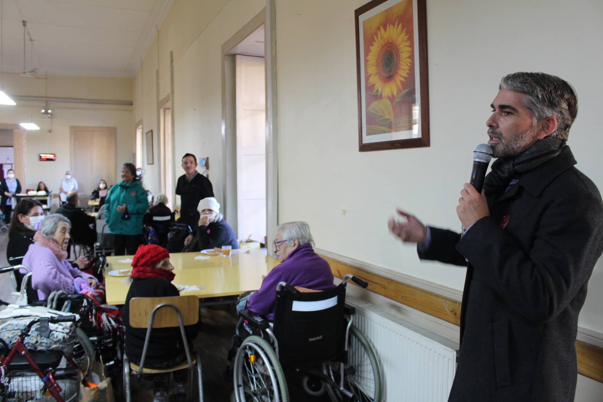 La visita tuvo momentos de gran alegría, como la entrega de un presente a todas las personas mayores del Hogar y el compartir una rica torta a la hora de “once”. También hubo espacio para la emoción y reflexión, cuando el grupo visitó la Sala San José, patrocinada por la misma compañía, y que está especialmente habilitada para transitar los últimos días de vida de una persona, en un espacio tranquilo, de oración y con una entrada independiente, que permite a sus familiares o amigos acompañarla hasta el momento final de partida.