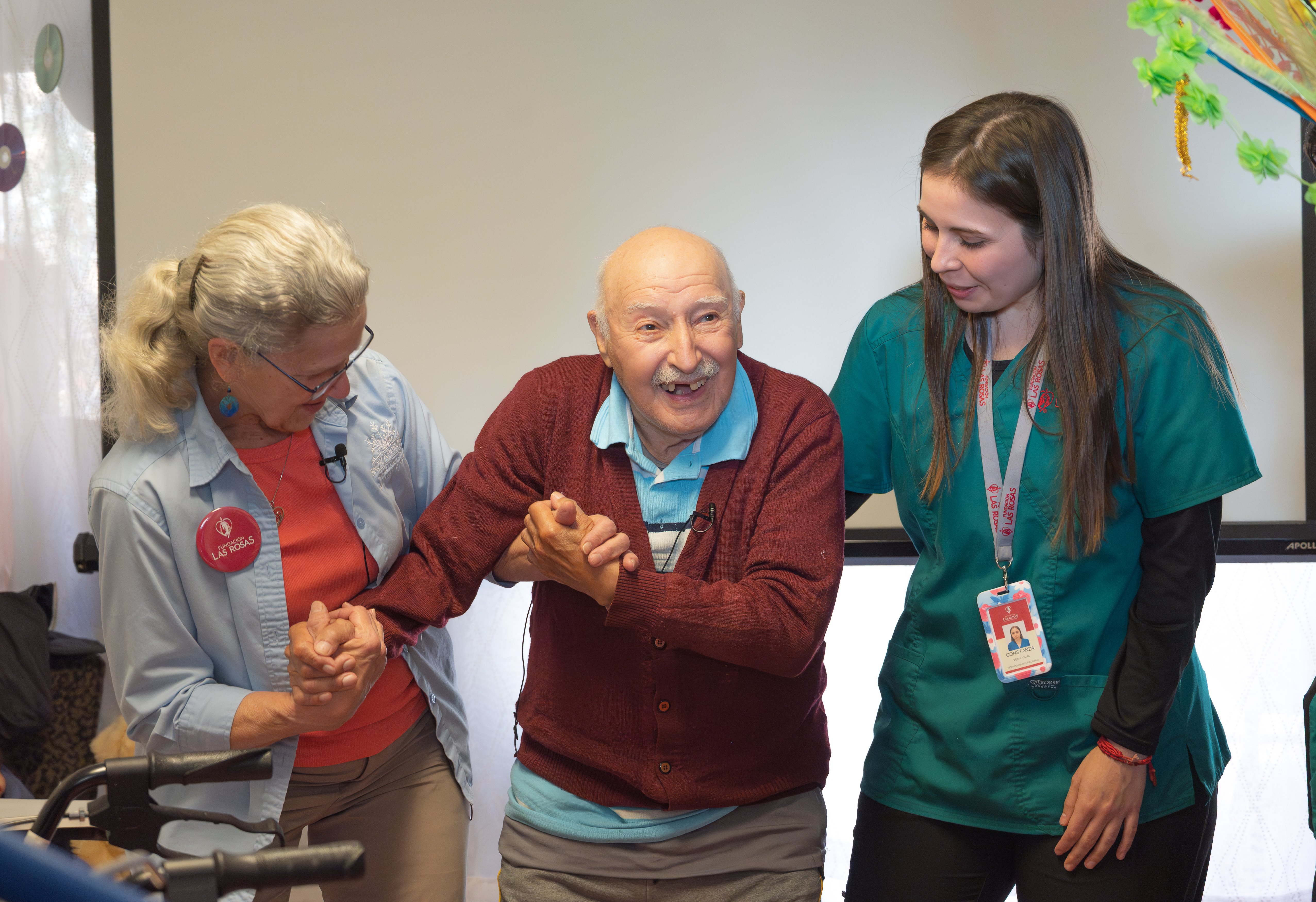 “Lo que ella enseña es una forma de mirar al otro con dignidad, aunque el otro ya no recuerde tu nombre. No se trata de que la persona con daño cerebral cambie, sino de que tú cambies como cuidador, desde tu tono de voz, tu postura corporal, tu ritmo, hasta la forma en que te acercas al paciente y lo tomas de la mano”, explica el geriatra de Fundación Las Rosas, Dr. Alejandro Ceriani. “Cuando lo haces de la forma adecuada, el vínculo florece”, agrega el médico.