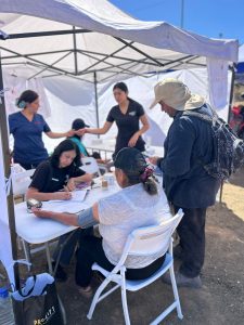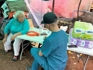 Para el también kinesiólogo Juan Salas, que viajó desde el Hogar de Fundación Las Rosas en Arauco, los síntomas respiratorios se confunden muchas veces con el estrés que arrastran las personas mayores. “Algunos llevan semanas durmiendo en condiciones complejas, en el suelo, en carpas, prácticamente a la intemperie, soportando frío y lluvia, condiciones cuyo efecto es físico y emocional para ellos”, afirma.