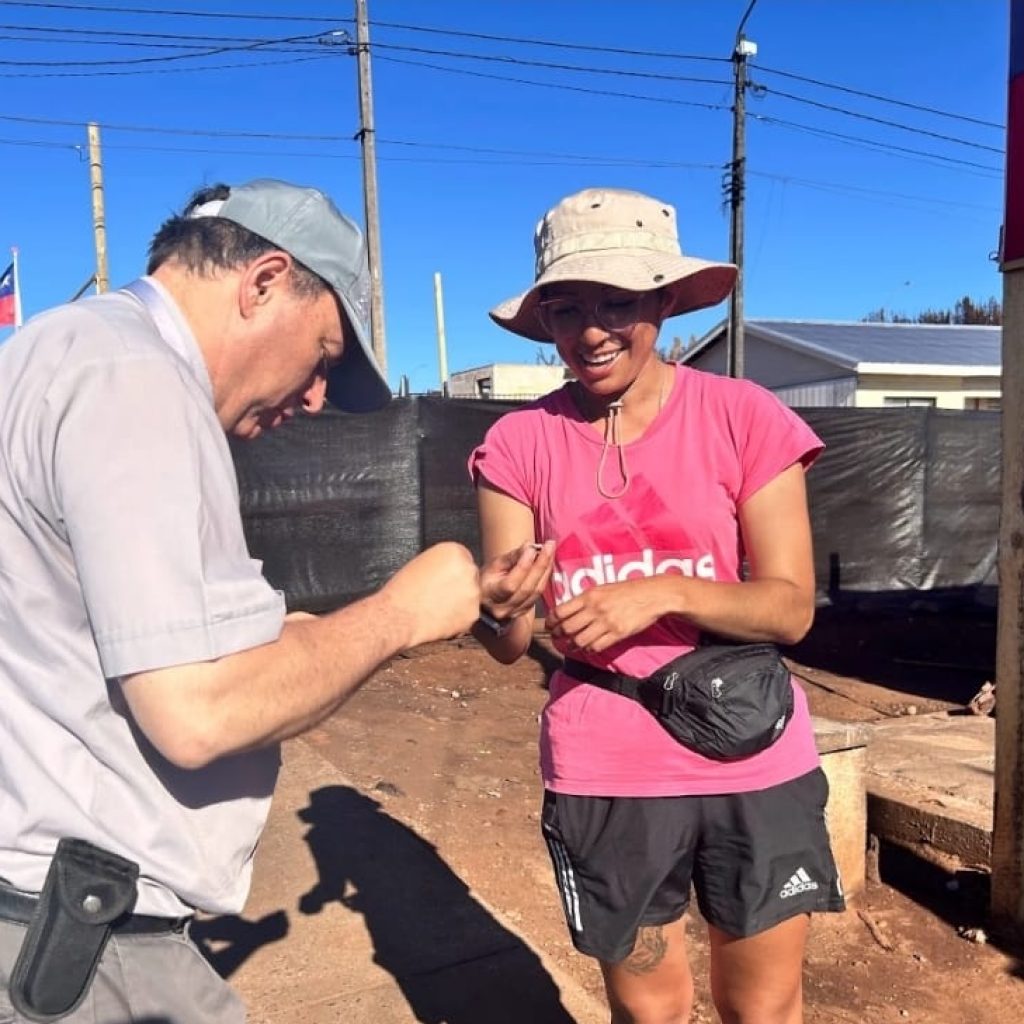 (Febrero 2026) La señora Berta tiene 70 años y lleva casi un mes durmiendo sobre un pallet de madera, en un sitio cercano a las ruinas de su antigua casa, en Punta de Parra, Tomé. El inmueble, al igual que el de sus vecinos, resultó completamente destruido por las llamas a mediados de enero. “Tengo mucho dolor de cintura y me cuesta dormir”, se queja con razón, mientras el kinesiólogo de Fundación Las Rosas, ejecuta algunos ejercicios para ayudarla a aliviar sus molestias.