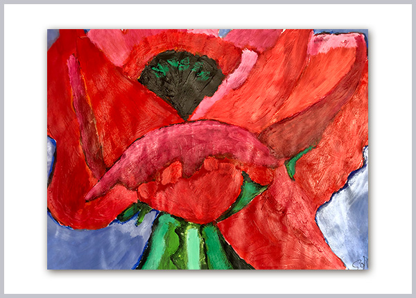 FLOR ROJA FONDO AZUL